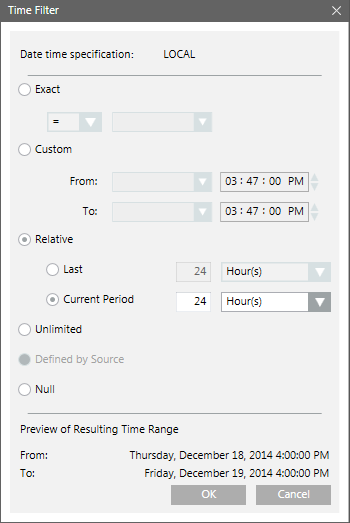 For more information regarding setting the time period, see Time Filter. In this case, as we want the data for the current 24-hour period, select Current Period and specify 24 hours.
