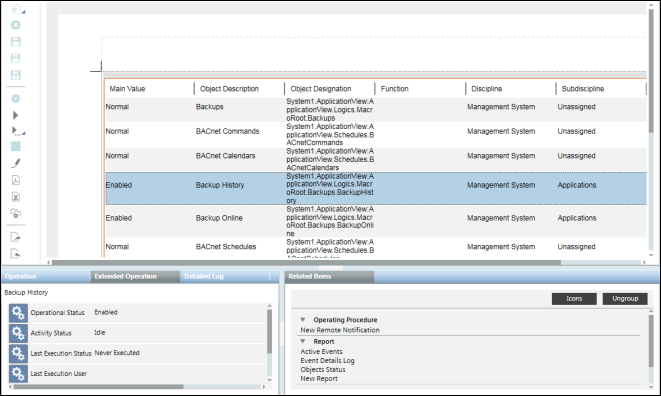 1. The information of the object or objects in the selected row or rows displays in the Extended Operation tab.