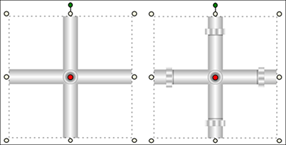 When you draw the pipe coupling on the canvas, the default connector types is the cross. Below is an example of the cross-connector pipe coupling with the addition of the joints added.