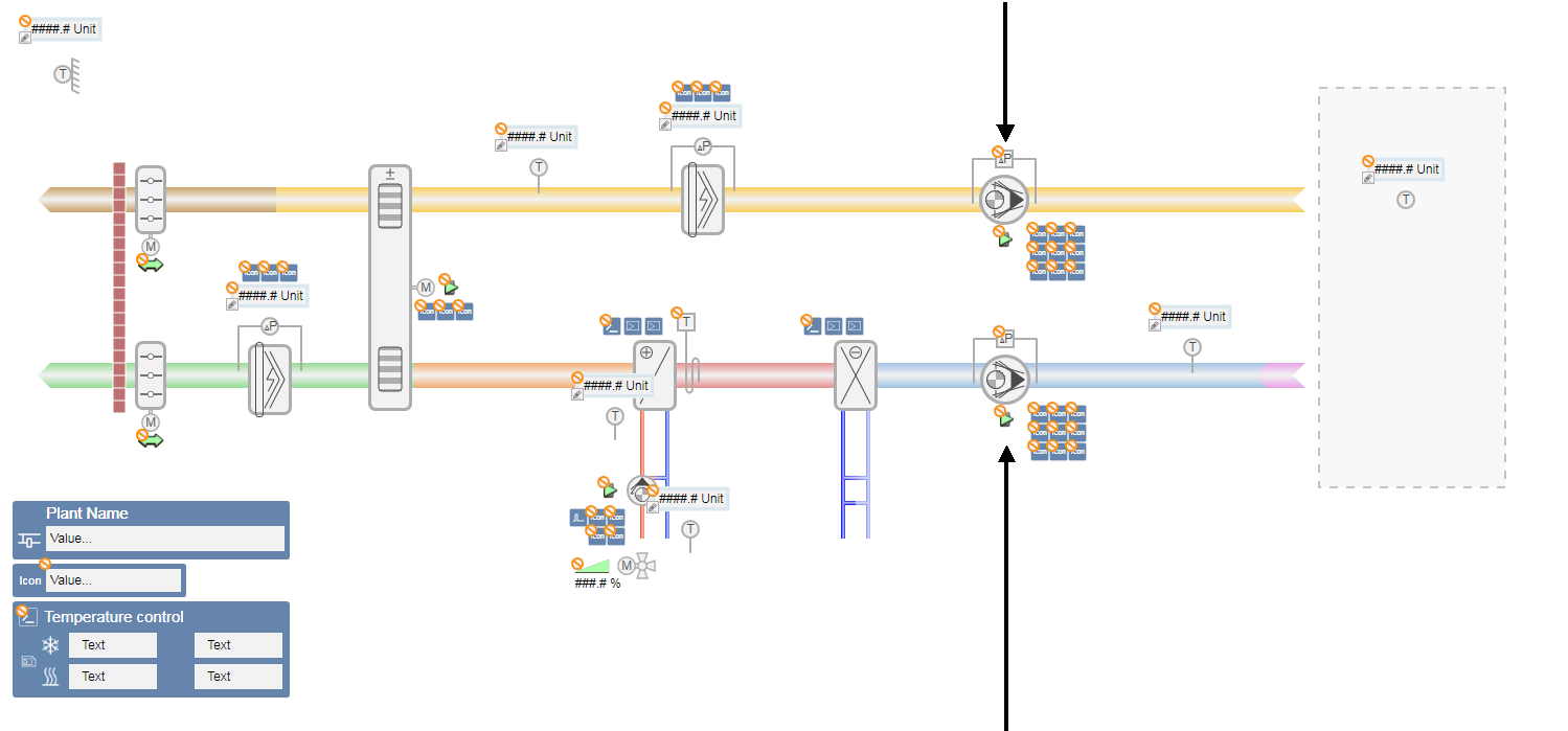 The Graphics Generator generates dynamic graphics pages for operational plants. The pages are generated based on existing BACnet data points that are available on the Desigo building automation and control automation station and set up on standard applications.
