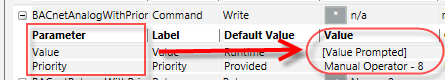 Once you have selected the property, for example, Present_Value, the Command Configuration table displays the command information related to the object type.