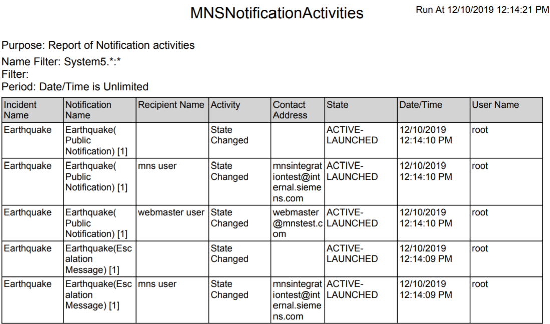 Example of Notification Report