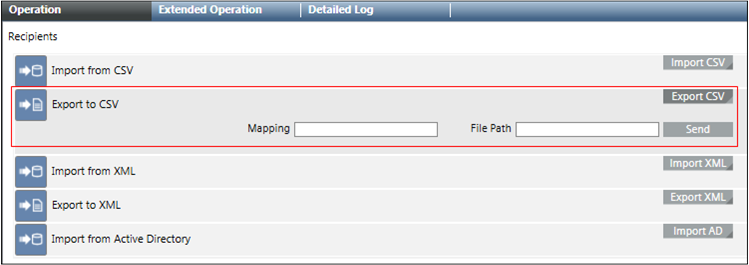 The Export to CSV using Command feature allows you to configure a CSV mapping and export the recipients to a CSV file.