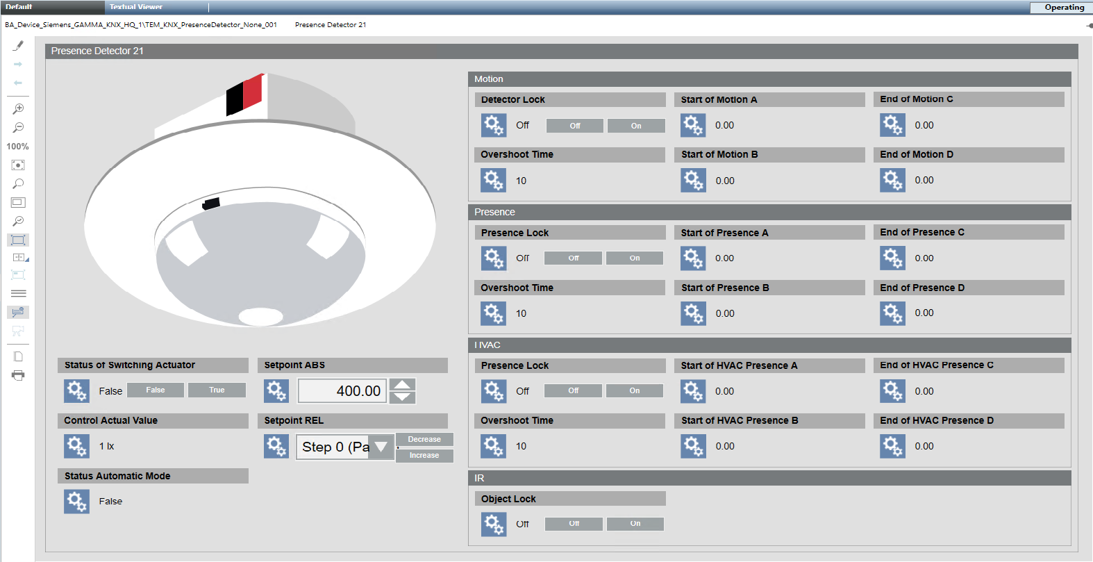 In Engineering mode, this is the graphic template for the UP 258E22 and UP 258D12 presence detectors.
