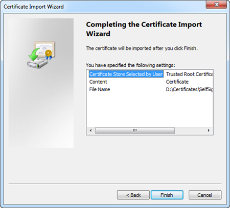 1. The selected certificate (root or self-signed) is imported successfully to the selected store.