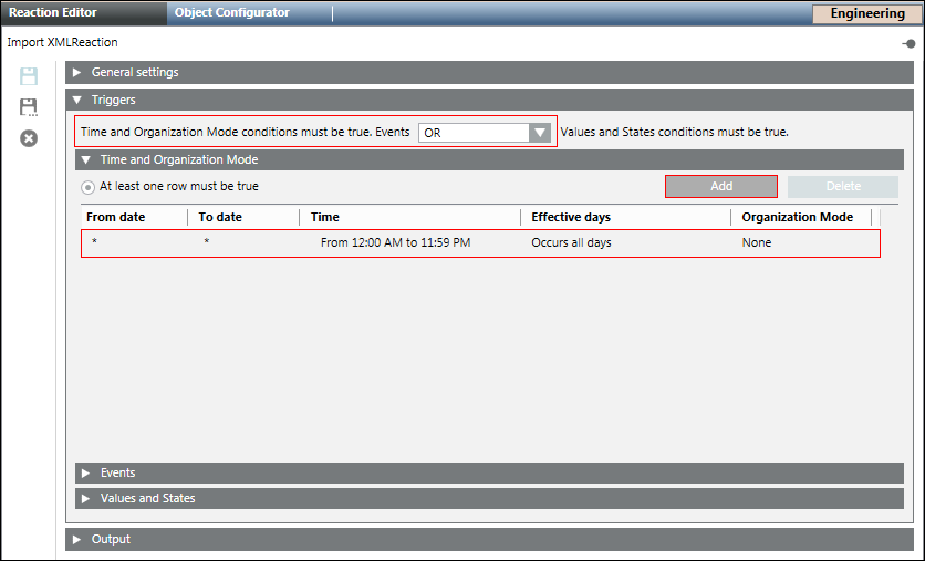 - Click Add to add a new time row and enter a new time or schedule that periodically triggers the Import XML command.