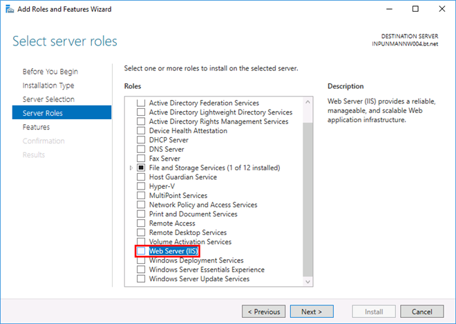 - Gehen Sie unter Serverrollen wie folgt vor: