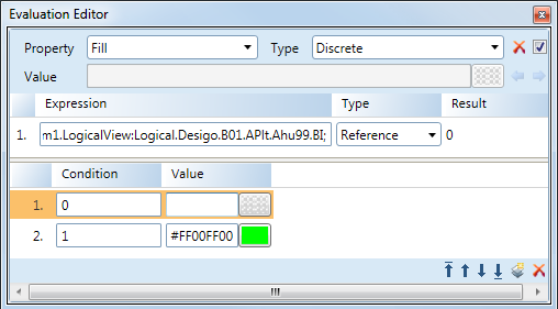 - Mit Drag & Drop ziehen Sie das Objekt in die Spalte Ausdruck des Evaluationseditors.