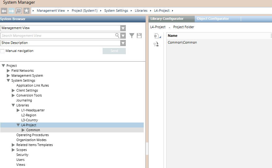 Projekt > Systemeinstellungen > Bibliotheken > L4-Projekt oder L3-Land oder L2-Region oder
