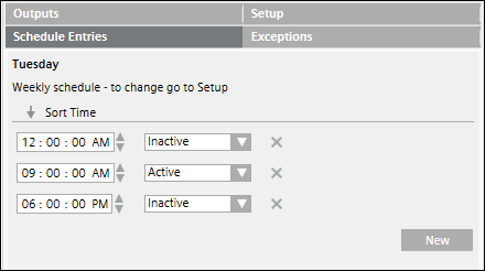 Geben Sie im Falle eines wöchentlichen Zeitplans die Werte Aktiv bzw. Inaktiv nur einmal an. Die Werte gelten für die gesamte Woche und für die gesamte Dauer des Zeitplans.