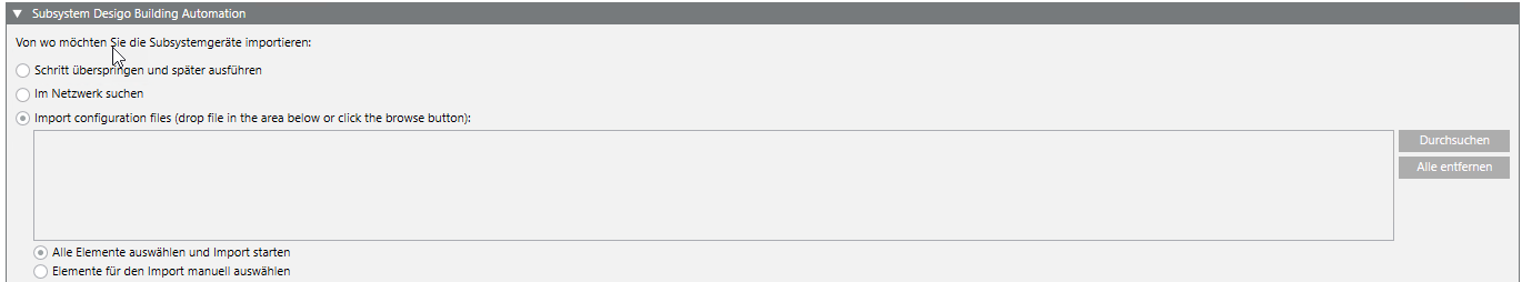 d. (Optional) Aktivieren Sie das Kontrollkästchen Alle Elemente importieren. Wenn das Kontrollkästchen aktiviert ist, müssen die Dateien in Schritt 9a nicht manuell gewählt werden.