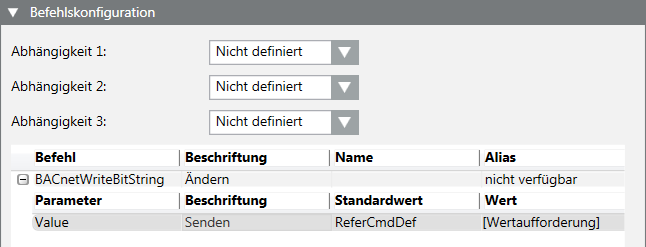 - Das Objektmodell muss über eine Schaltfläche zur Anforderung eines Tests verfügen. Wählen Sie ein Objektmodell und legen Sie für BACnet BACnetWriteBitString oder GenericWriteBitString fest.