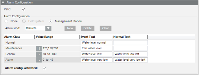 - Aktivieren Sie im Expander Alarmkonfiguration das Kontrollkästchen Gültig. Die Aktivierung wird in grau angezeigt.