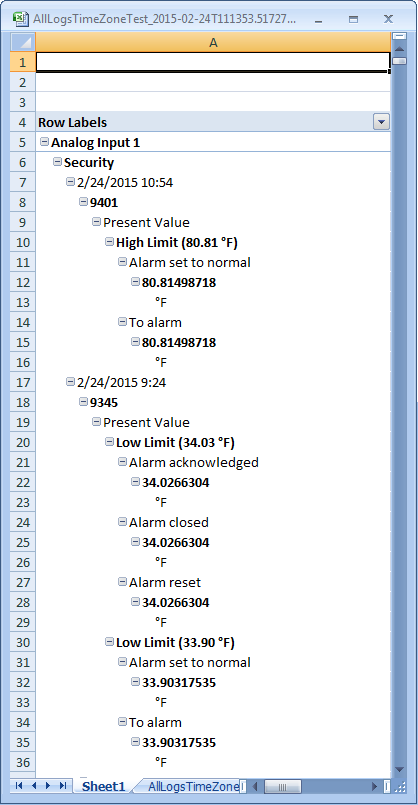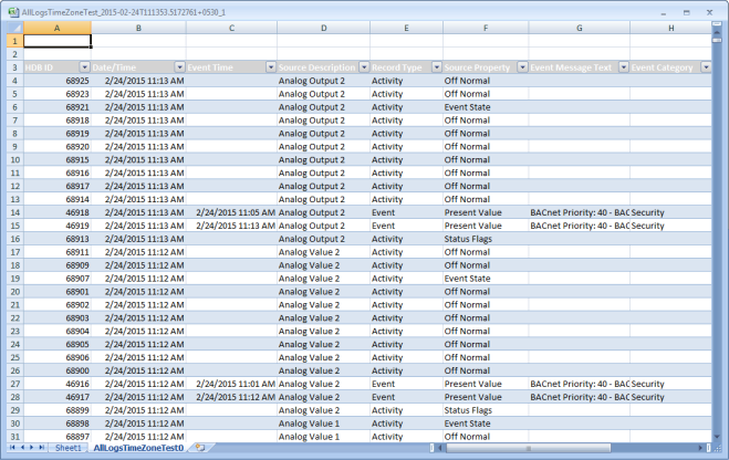 Im Falle einer Tabelle Ereignisdetails enthält das Excel-Dokument keine Kombifelder, da die Daten übergeordnete und untergeordnete Sätze anzeigen.