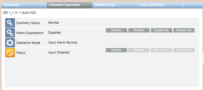 Enable | Permanently includes the input in the system. This command overrides any programmed enable/disable schedule defined in SiPass. |