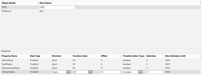 Fire Detector instance | Property | Offset in Object Model | Offset in CSV | Final Offset | SubIndex in Object Model | SubIndex in CSV | Final SubIndex |