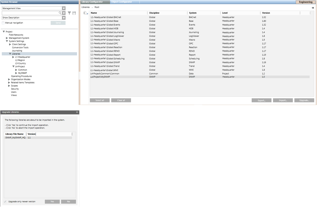- Wenn das Dialogfeld Bibliotheken aktualisieren angezeigt wird, klicken Sie Ja, um die SNMP-Bibliothek zu aktualisieren.