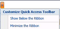 Mit dem Kontextmenü der Symbolleiste für den Schnellzugriff können Sie auf die Schaltflächen der Menüleiste zeigen, um der Schnellzugriffsleiste eine Task hinzuzufügen, oder durch Zeigen auf die Schaltflächen der Schnellzugriffsleiste die Tasks daraus zu entfernen. Abhängig von Ihren Einstellungen ist die Symbolleiste für den Schnellzugriff oberhalb oder unterhalb des Menübands.