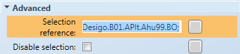 - Um das Bedienobjekt erscheint ein roter Rahmen, und im Register Erweiterte Bedienung werden die Eigenschaften angezeigt.