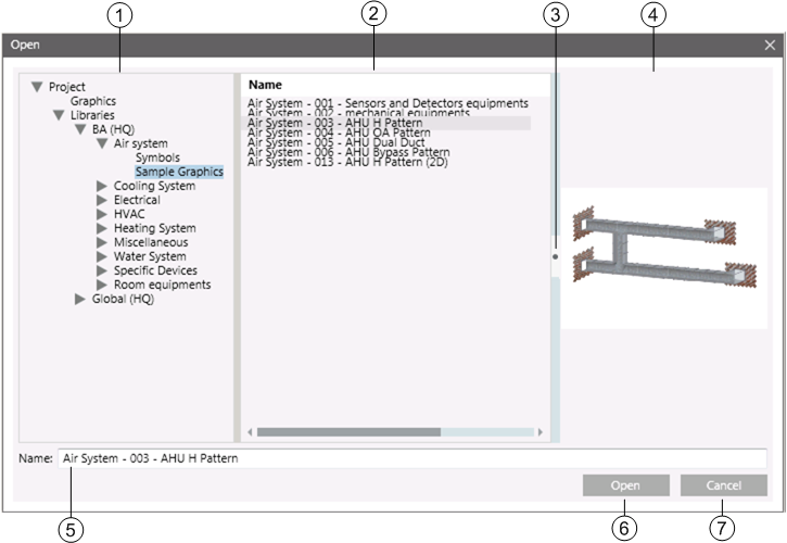 2 | Bibliotheksinhalt | Zeigt eine Liste aller Grafiken im ausgewählten Ordner an. |