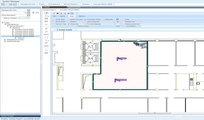 Um einen Abdeckungsbereich in einer Grafik zu nutzen, ziehen Sie aus dem System Browser ein Überwachungsgerät, das mit einem Abdeckungsbereich verknüpft ist, in den Zeichenbereich des Grafikeditors. Sie können die Form des Abdeckungsbereichs für diese bestimmte Instanz des Symbols mit Abdeckungsbereich anpassen. Hierfür ist jedoch erforderlich, dass die Eigenschaft "ID" des Abdeckungsbereichs im Symbol gesetzt ist. Sie legen Ihren Abdeckungsbereich an, indem Sie Objekte aus dem System Browser hinzufügen, die sich im Überwachungsbereich Ihres Geräts befinden.