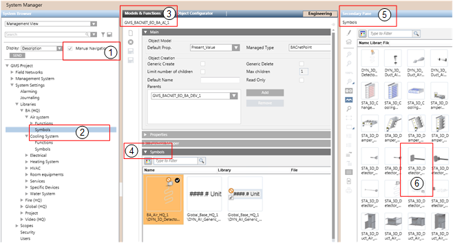 Projekt > Systemeinstellungen > Bibliotheken > L1-Headquarter > BA > [Subsystem] > Symbole. - Rechtsklicken Sie die ausgewählte Symbolbibliothek und wählen Sie den Im sekundären Arbeitsbereich öffnen.