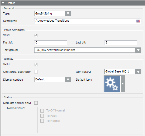 - Definieren Sie den Normalwert für die Eigenschaft entsprechend ihres Datentyps (GmsReal, GmsBitString, GmsEnum). Siehe Eingabefelder für den Normalwert.