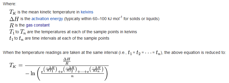 Eine überproportionale Gewichtung höherer Temperaturen in einer Temperaturreihe gemäss der MKT berücksichtigt den beschleunigten thermischen Abbau von Materialien bei diesen höheren Temperaturen. Die MKT trägt diesem nichtlinearen Temperatureffekt Rechnung.