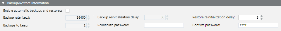 Verzögerung bei der Backup-Reinitialisierung | Gibt die Backup-Reinitialisierungsverzögerung (in Sekunden) an. Der Standardwert ist 5 Sekunden. |