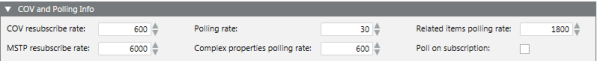 Poll bei Abonnement | Aktivieren Sie dieses Kontrollkästchen, wenn Sie ein langsames Gerät (MSTP) haben, das nach einem Abonnement nicht schnell einen Wert zurückgibt. |