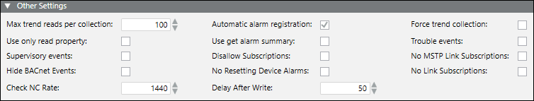 Der Expander Andere Einstellungen zeigt zusätzliche Einstellungen für BACnet-Geräte an.