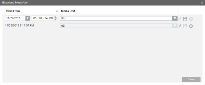 Mit dem Dialogfeld Historisierte Medieneinheit können Sie medieneinheitsrelevante Informationen historisieren.