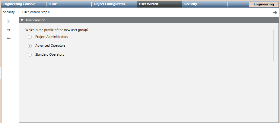 - Wählen Sie den Typ der Benutzergruppe, die Sie erstellen möchten. Die Profile der Benutzergruppen haben vorkonfigurierte Rechte für Ereignisse und Applikationen; Sie können die Standardkonfiguration anschliessend über das Register Sicherheit ändern.