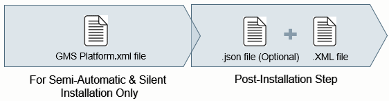 Bei einer halbautomatischen oder einer stillen Installation wird eine vorkonfigurierte Datei GMS Platform.xml mit den Nachinstallationsschritten der Managementplattform (GMS) und/oder der Erweiterung (EM) benutzt.