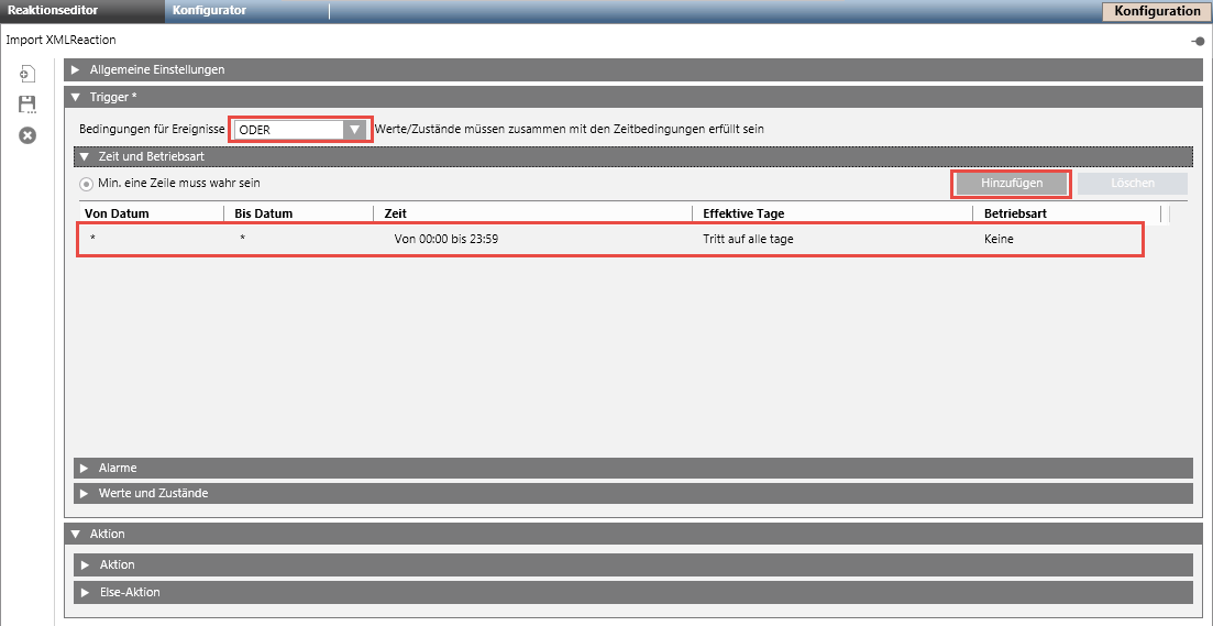 9. Öffnen Sie den Expander Trigger. Wählen Sie aus der Dropdown-Liste den passenden logischen Operator (UND, ODER).