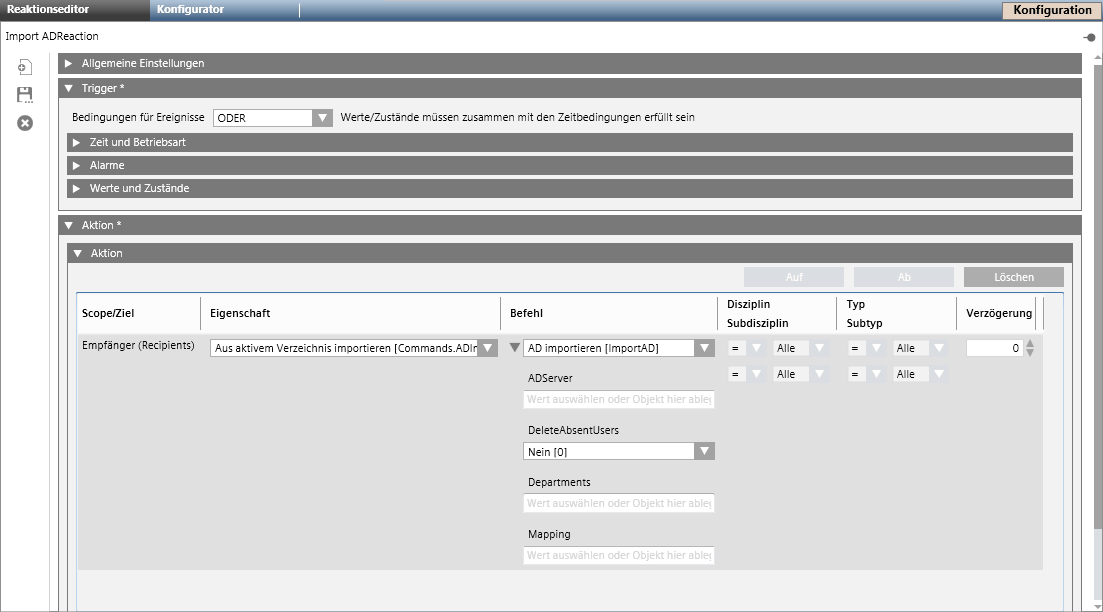 1. Die neue Reaktion "Active Directory importieren" wird im System Browser angezeigt.