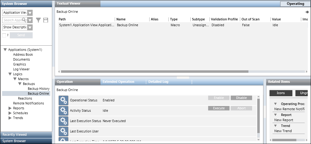 2. Wählen Sie Applikationen > Logik > Makros > Backups > Backup Online.