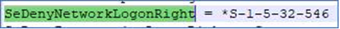 - Öffnen Sie die Datei initial.cfg in einem Editor, beispielsweise in Notepad, und suchen Sie SeDenyNetworkLogonRight.