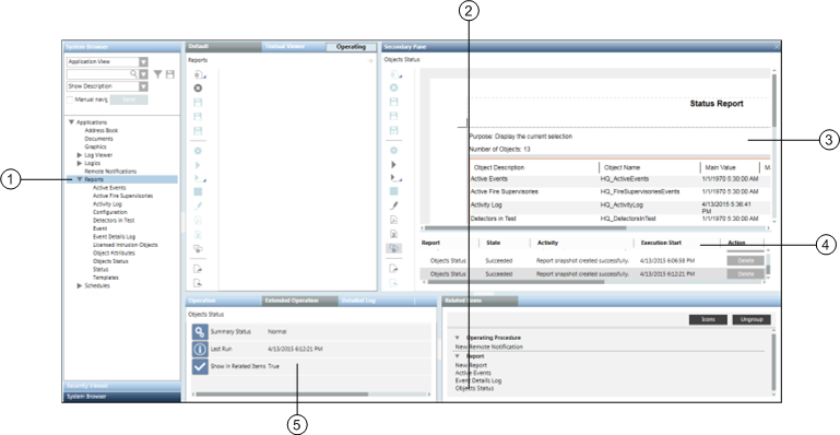 Speicherort der gewählten Berichtsdefinition – vor und nach der Ausführung – mit Befehlssymbolleiste zum Ausführen der Berichtsdefinition auf der linken Seite des sekundären Arbeitsbereichs.