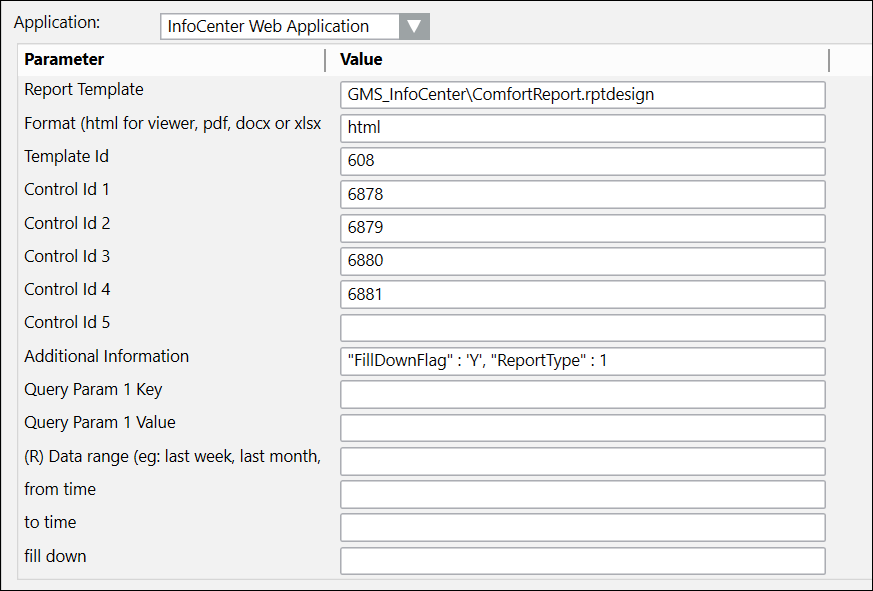 Template and Control IDs will not be the same as the example below. These values vary depending on the user and on the details of the reports in the InfoCenter database.