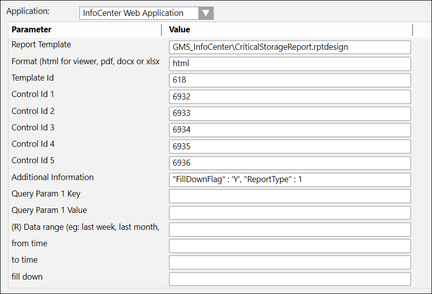 Template and Control IDs will not be the same as the example below. These values vary depending on the user and on the details of the reports in the InfoCenter database.