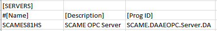 To integrate the SCAME S81-HS fire detection system into Desigo CC you must first prepare a textual configuration file in CSV (comma separated values) format that defines the servers-groups-items structure.