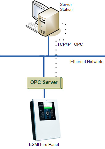 The Esmi fire detection panel can communicate with the management station over the TCP/IP OPC protocol through the integrated OPC server.