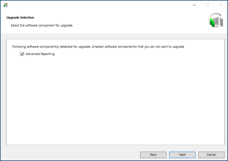 - Das Dialogfeld Auswahl der Aktualisierung wird nur dann angezeigt, wenn auf den Distributionsmedien eine aktuellere (höhere Version) einer bereits installierten Erweiterung vorhanden ist. Es führt standardmässig alle installierten Erweiterungen auf, für die die korrigierte/aktualisierte Erweiterung verfügbar ist.