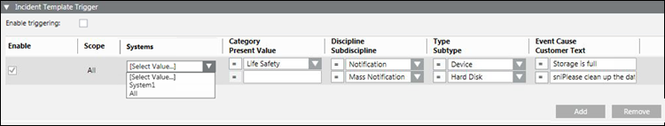 Das Filterkriterium Systeme enumeriert alle (verbundenen) Systemnamen, die in der SMC konfiguriert sind, zusätzlich zum Platzhaltereintrag Alle. Wenn eine neue Regel erstellt wird, wird standardmässig der Text [Wert wählen...] für das Systemkriterium angezeigt, der den Benutzer auffordert, den jeweiligen Systemwert aus der Dropdown-Liste zu wählen.