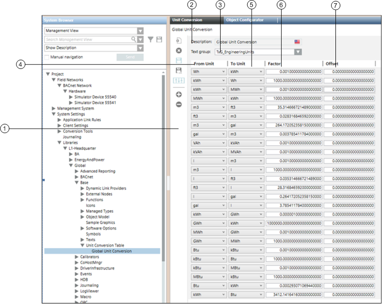 6 | Faktor | Geben Sie den Konvertierungsfaktor ein. Wenn Sie zum Beispiel Watt in Kilowatt umrechnen möchten, muss der Wert in diesem Feld 0,001 lauten. |
