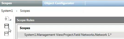 - Ziehen Sie die Objekte oder Substrukturen (zum Beispiel Netzwerk 1), die eingeschlossen werden sollen, vom System Browser in das Feld Scopes des Abschnitts Scope-Regeln.