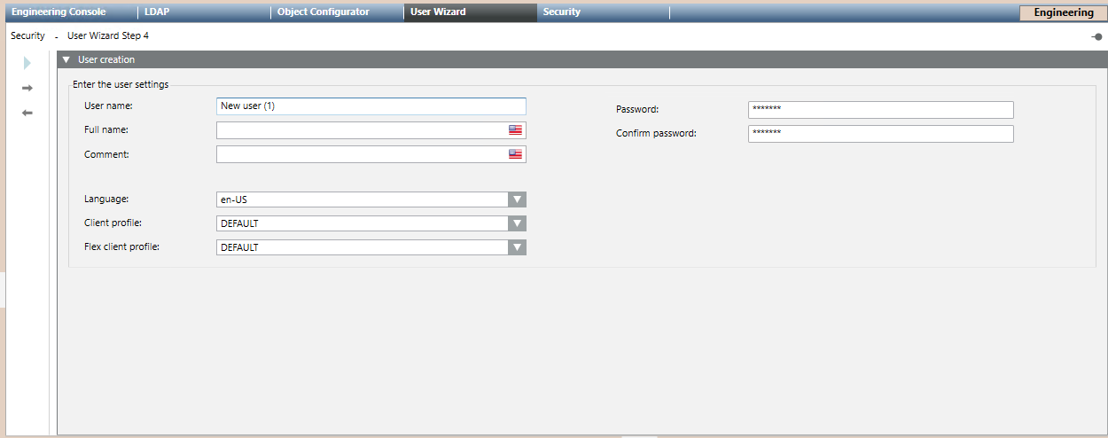 Wenn Sie im vorigen Schritt Desigo CC-Benutzer gewählt haben, geben Sie das Passwort des Benutzers ein und wiederholen Sie es zur Bestätigung.