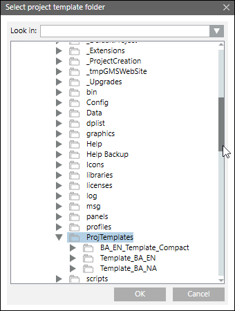 , um ein Projekt basierend auf einer Projektvorlage zu erstellen. Wählen Sie im Dialogfeld Projektvorlagenordner auswählen die gewünschte Projektvorlage aus dem Ordner ProjTemplates, und klicken Sie OK.