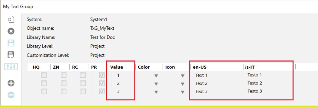 Die folgende Abbildung zeigt die entsprechenden Felder im Register Textgruppen-Editor:
